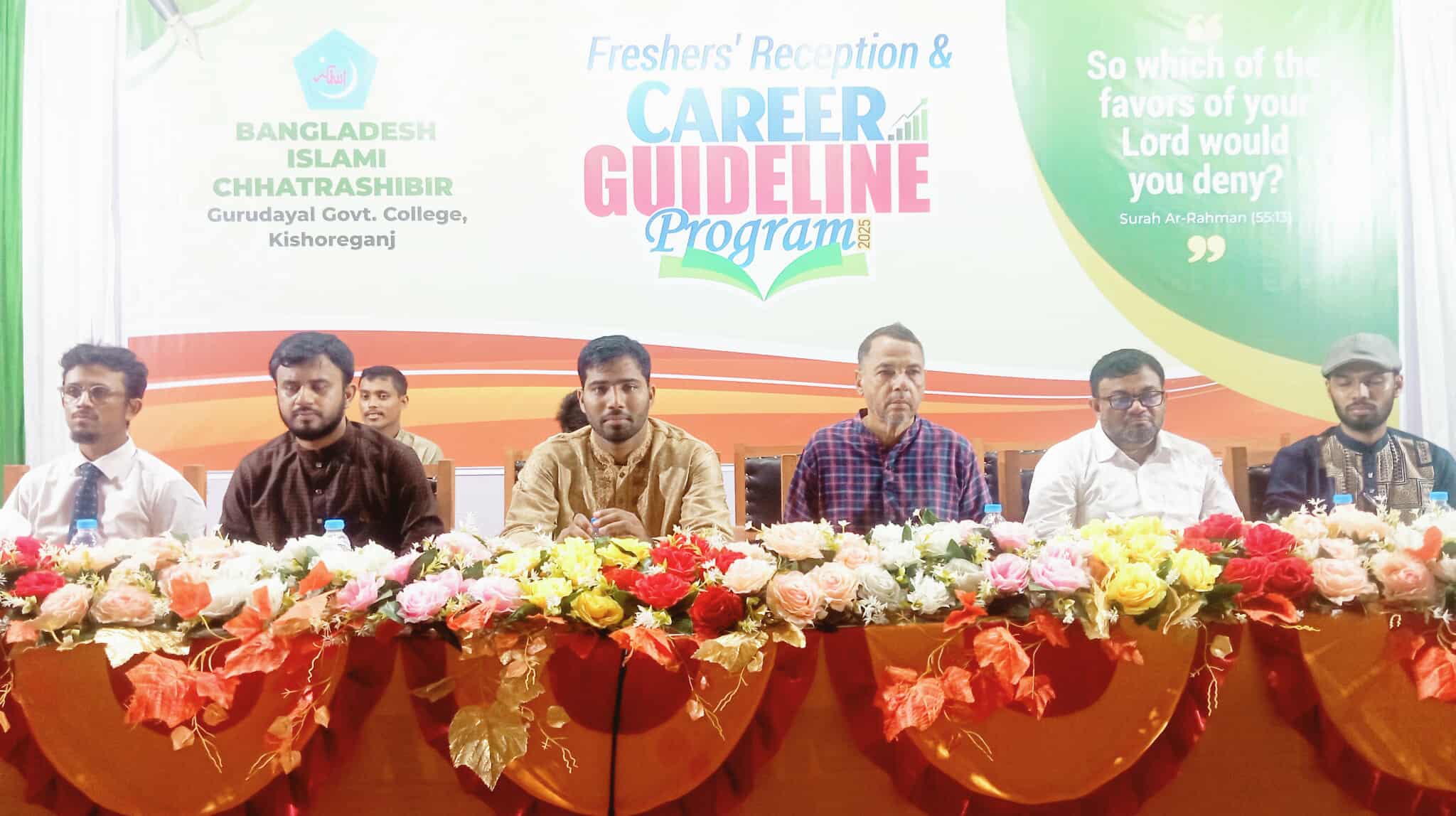 কিশোরগঞ্জের গুরুদয়াল সরকারি কলেজে স্নাতক প্রথম বর্ষের নবীন শিক্ষার্থীদের অভ্যর্থনা দিয়েছে ইসলামী ছাত্রশিবির। কলেজে ‘ফ্রেশারস রিসেপশন অ্যান্ড ক্যারিয়ার গাইডলাইন প্রোগ্রাম’ এর মাধ্যমে তাদের এই অভ্যর্থনা দেয়া হয়। অনুষ্ঠানে ৪৫০ জন শিক্ষার্থী অংশ নেন।